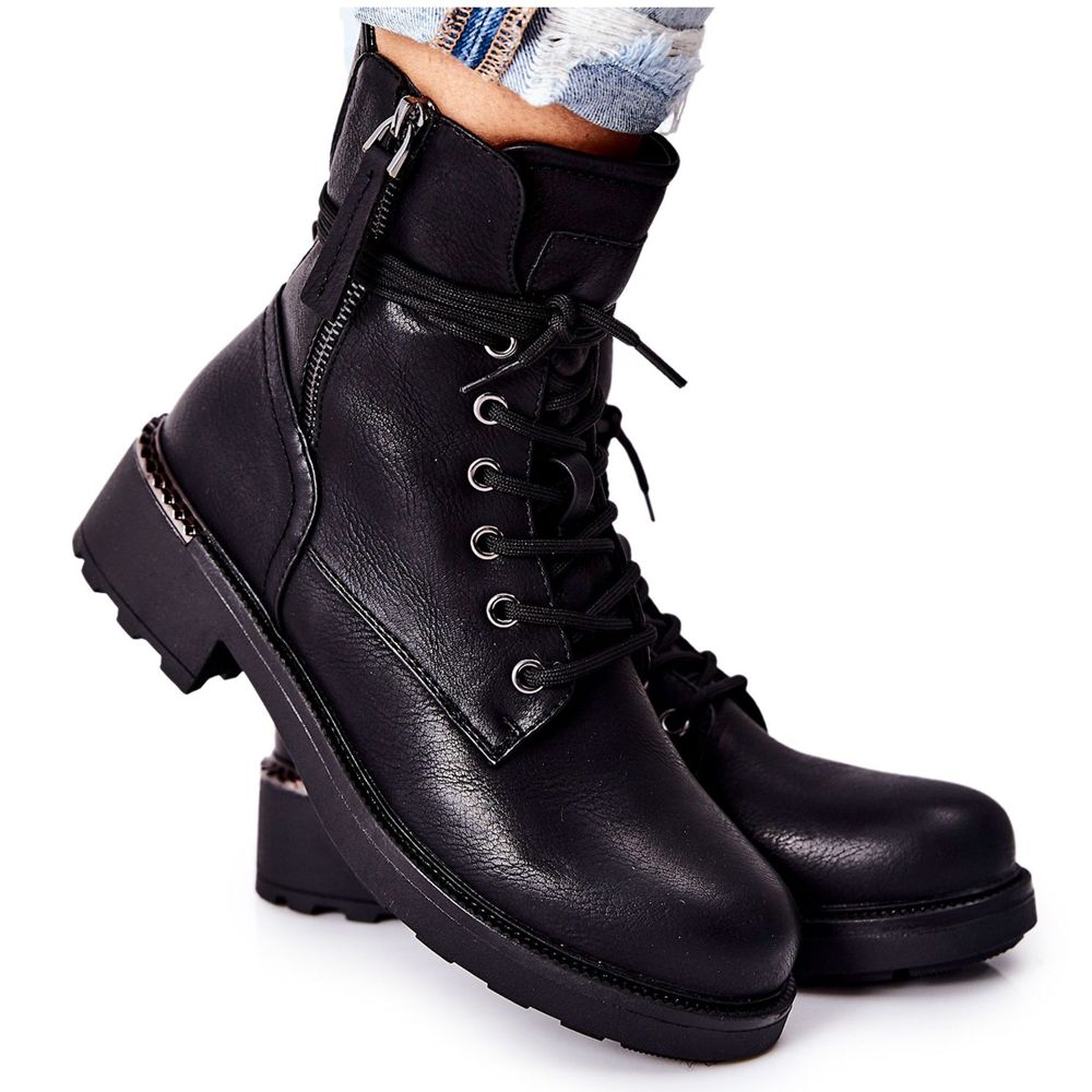 Stylové a praktické boty pracovníků vyrobené z ekologické kůže. Na dvou stranách, vybavených posuvníky, které velmi usnadňují nasazení, a efektivní šněrování vám umožňuje dokonale porovnat horní část s tele. Měkká izolace z čepele obuvi poskytuje tepelné pohodlí v chladnějších dnech a dekorativní prvek s patou přidává znak.