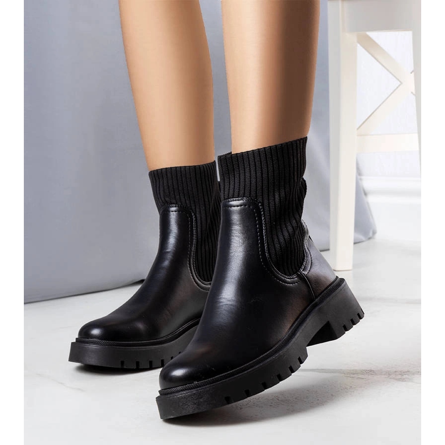 Elegantní a praktické boty, které jsou ideální pro zimní stylizace. Horní kombinuje vysoce kvalitní ekologickou pokožku s elastickou látkou, která zaručuje pohodlí nošení a lépe fit. Vysoká černá gumová podešev je módní přízvuk a odolný, odolný vůči špatnému řešení. Interiér je zakončen teplým materiálem napodobujícím kožešinu - ideální pro chladnější dny.