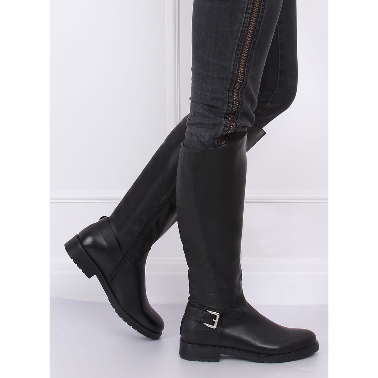 Černé zateplené kozačky G3371A jsou výbornou volbou pro ženy, které hledají stylovou a funkční obuv na zimní dny. Tyto elegantní dámské kozačky, charakteristické klasickým střihem, mají plochý podpatek, díky kterému se pohodlně nosí každý den.