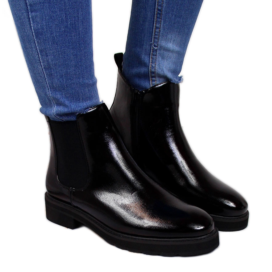 Podrobnosti: Černé zateplené černé lakované Chelsea boty Sergio Leone černá