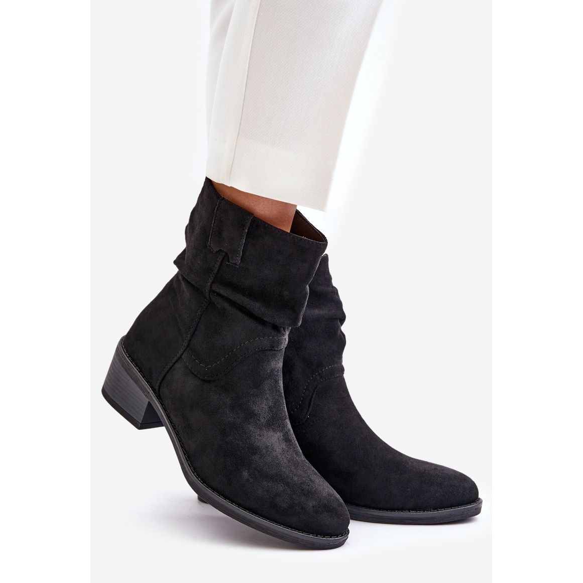 Inna marka Černé zateplené dámské kotníkové boty Zinanya s nařaseným horním nízkým podpatkem černá