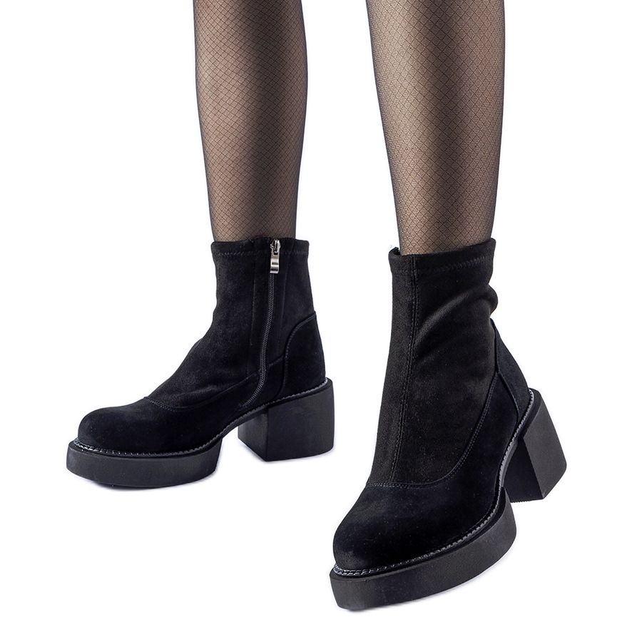Stylové, pohodlné a teple černé boty sahající po kotníku jsou podzimní život. Vyrobeno z semišové ekologické kůže, uvnitř uvnitř, na stabilním bloku 6,5 cm. Ideální pro každodenní a elegantnější stylizace.