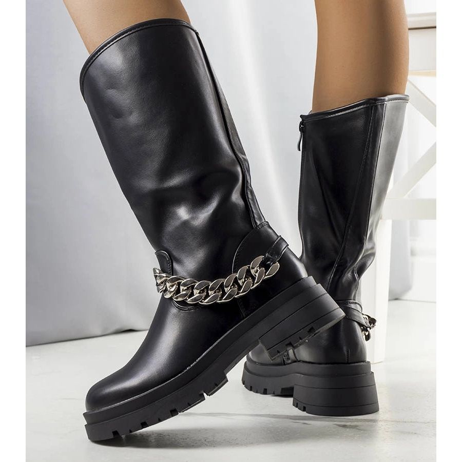 Elegantní, černé izolované boty ISAI jsou návrhem pro ženy, které si cení pohodlí v kombinaci s módním, nadčasovým designem. Vyrobeno z vysoce kvalitní ekologické kůže, s příjemnou dotykovou izolací napodobující kožešinu, zajišťuje pohodlí i v chladných dnech. Stabilní, vysoká platforma (5 cm) vyrobená z gumy, odolná vůči povětrnostním podmínkám, přidává charakter a zvyšuje trvanlivost obuvi. Jemný řetězec je módní detail, který zdůrazňuje jejich univerzální, klasický řez.