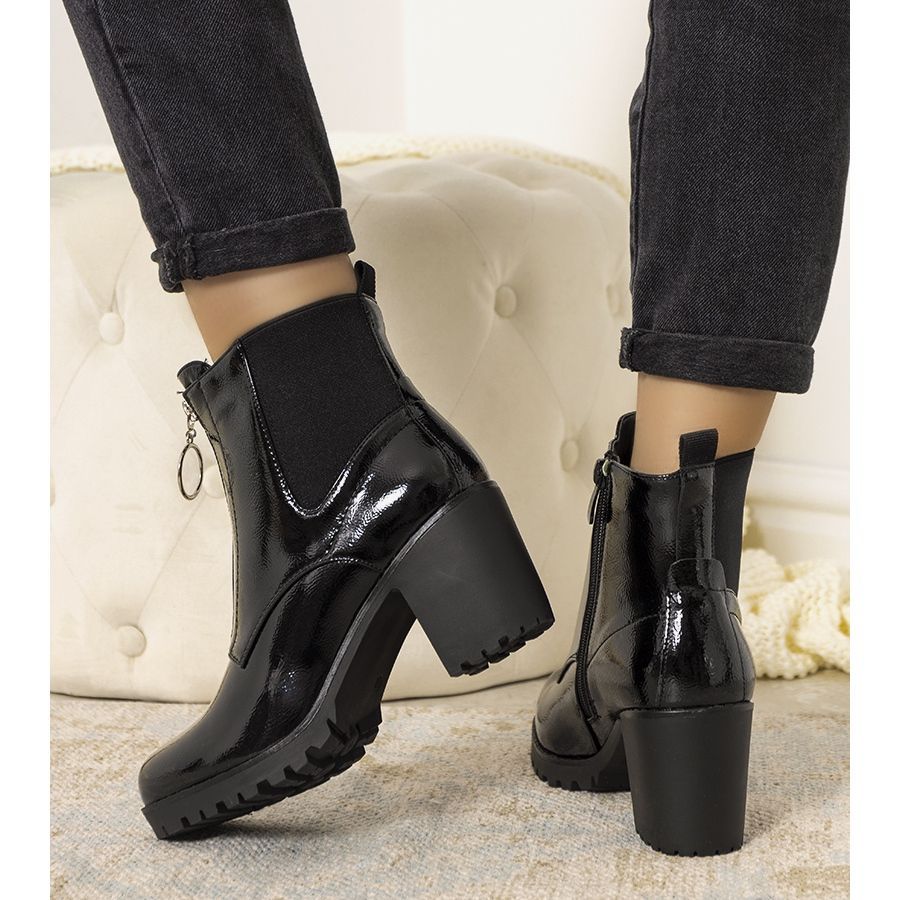 Objevte eleganci a pohodlí s černými zateplenými lakovanými kotníčkovými botami Ward. Tento fenomenální model vyrobený z vysoce kvalitní lakované ekologické kůže dokonale kombinuje styl s pohodlím a dokonale odpovídá nejnovějším módním trendům. Sloupek vysoký 7 cm nejen zdůrazní postavu, ale také zajistí stabilitu při nošení.