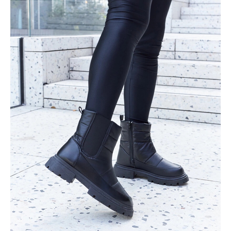 Skvělé pro městské stylizace a pro procházky po zasněžených chodnících. Univerzální černá barva způsobuje, že boty snadno odpovídají neformálním i elegantnějším oblečení.