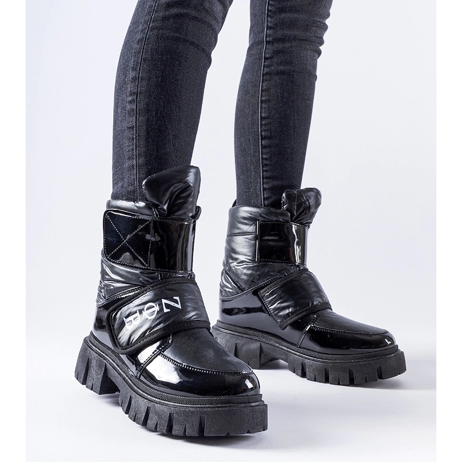 Stylové a funkční sněhové boty žen, ideální pro chladnější dny. Klasické, černé barvy a lakované akcenty jim dávají eleganci a izolace poskytuje tepelné pohodlí i při nízkých teplotách. Plochý, gumová podešev zaručuje adhezi a trvanlivost.