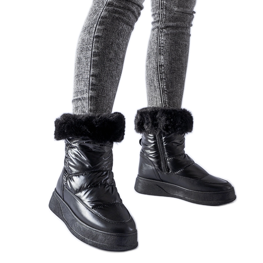 Černé izolované sněhové boty s Oliverem Fur - Styl a Comfort pro zimu