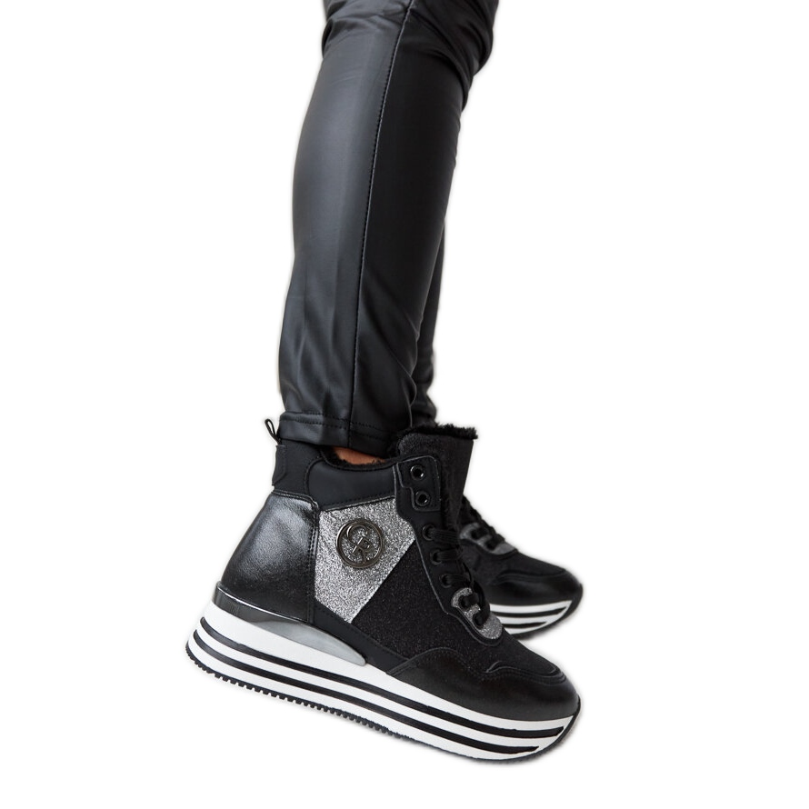 Černé izolované tenisky s brokátem Deleon - styl, pohodlí a teplo v chladných dnech