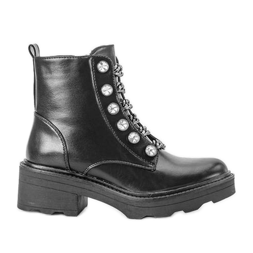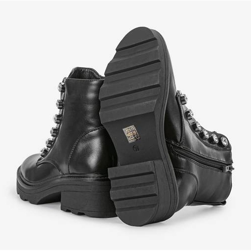 Pozornost věnovaná detailům je vidět na jedinečných dekoracích. Kamínky na svršku dodávají lesk a eleganci, zatímco černé metalické řetízky na jazyku vytvářejí rockový charakter, který jistě upoutá pozornost. Boty jsou vybaveny funkčním zipem, který usnadňuje nazouvání a vyzouvání brašen.