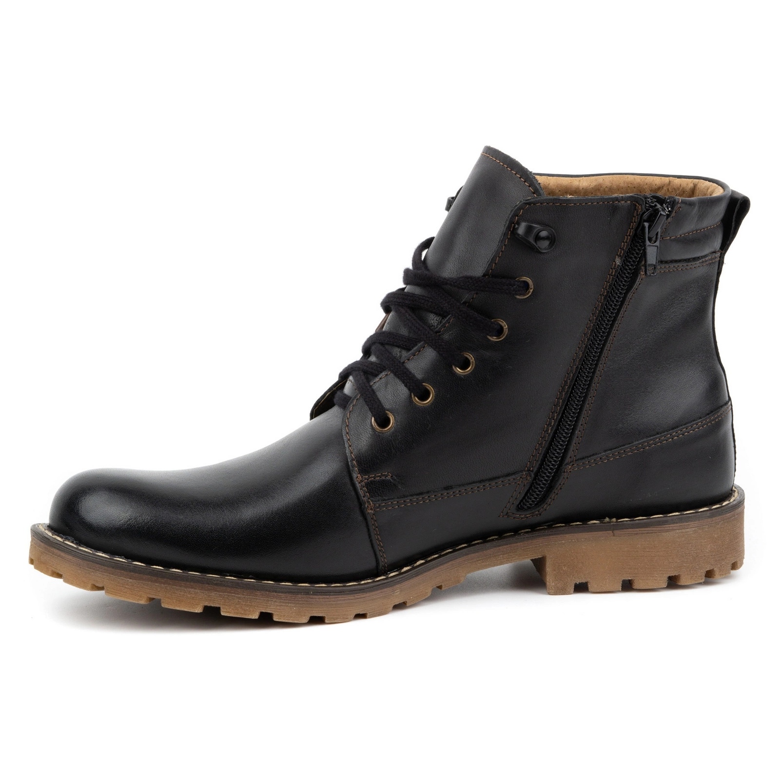 Elegantní, pánské boty Mario Pala 754 jsou návrhem pro lidi, kteří si cení nadčasového vzhledu a praktických řešení pro zimu. Vrchol je vyroben z nejvyšší kvalitní přírodní kůže, interiér polstrovaný přírodní vlnou zajišťuje efektivní izolaci proti mrazu a příjemným pocitem tepla. Pevná, dobře profilovaná podešev vyrobená z materiálu s vysokou kvalitou zaručuje stabilitu na různých površích. Model je vybaven šněrováním pro nastavitelné přizpůsobení a boční zámek, který usnadňuje rychlou instalaci, aniž by se musel pokaždé vázat.