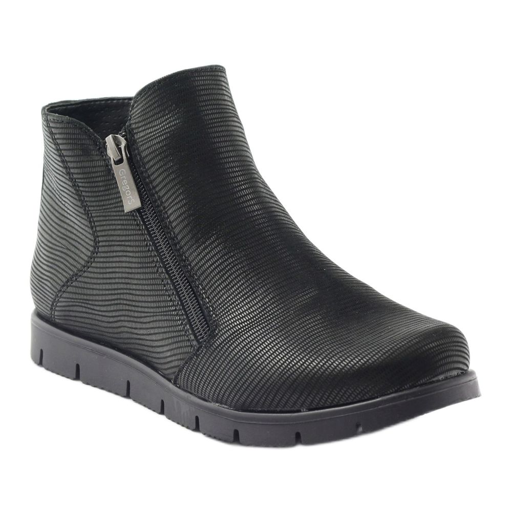 Dámské zimní boty Gregors 611 v černé barvě jsou ideální volbou pro ženy, které oceňují kombinaci stylu a pohodlí. Tyto elegantní kozačky vyrobené z přírodní embosované kůže perfektně padnou na každou nohu a jejich střih svršku efektně zvýrazňuje nohy.