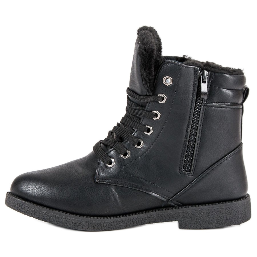 Černé dělnice se šněrují a mají zip, díky kterému se snadno nazouvají a svlékají. Výška boty dosahuje nad kotník, což navíc zajišťuje teplo a stabilitu. Jsou vyrobeny ze syntetických materiálů, snadno se čistí a nevyžadují složitou péči.