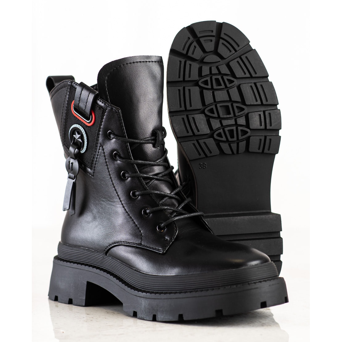Seastar Black Eco Leather Workers jsou perfektní volbou pro ženy, které oceňují pohodlí a módní styl v každodenním oblečení. Tyto elegantní černé kotníkové boty kombinují ležérní a rockový charakter, což z nich dělá perfektní doplněk každého podzimního/zimního šatníku.