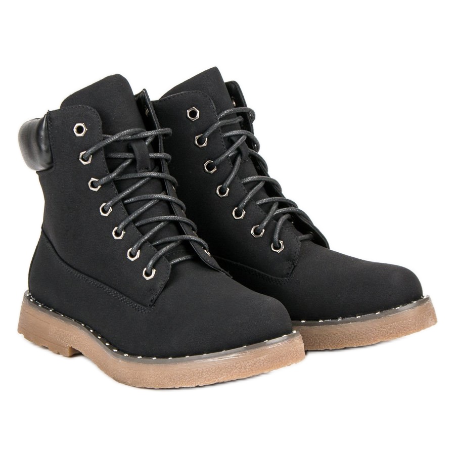 Černé tenisky Bestelle se také vyznačují decentně přidanými kamínky, které jim dodávají moderní ráz při zachování klasické estetiky. Kulatá špička zajišťuje pohodlí a tuhá pata stabilizuje patu, což je důležité zejména u obuvi používané v obtížnějších podmínkách.