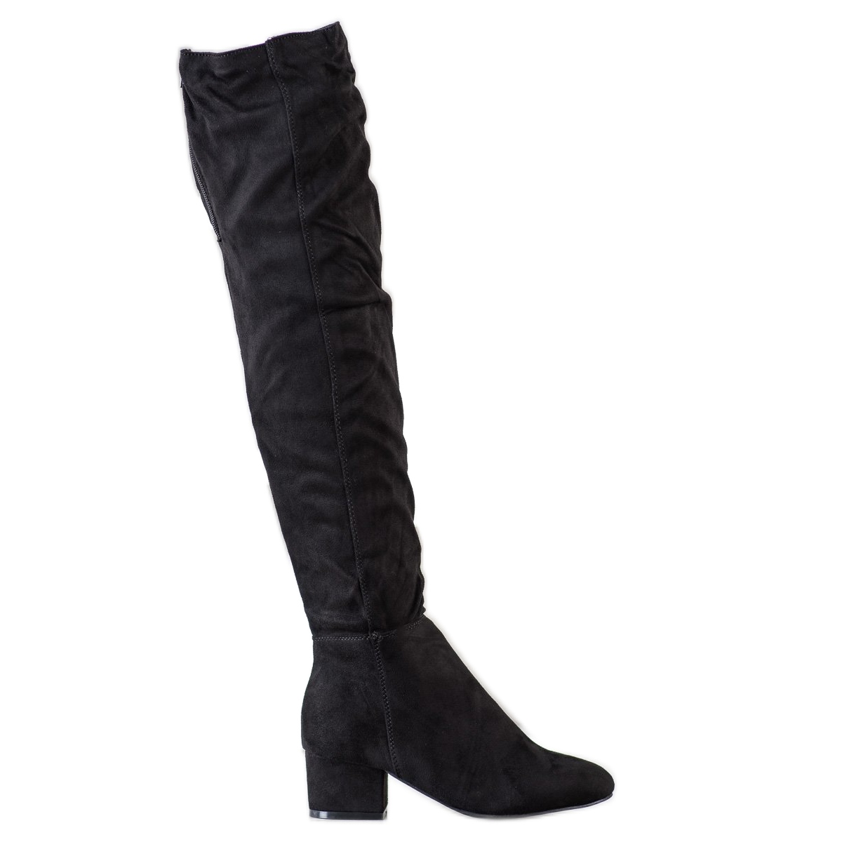Svršek nad kolena široký 40 cm dokonale zvýrazňuje nohy a stabilní 5centimetrový blokový podpatek dodává sebevědomí a dělá držení těla ještě elegantnějším. Díky hladké podrážce ze syntetického materiálu se mušketýři také snadno udržují.
