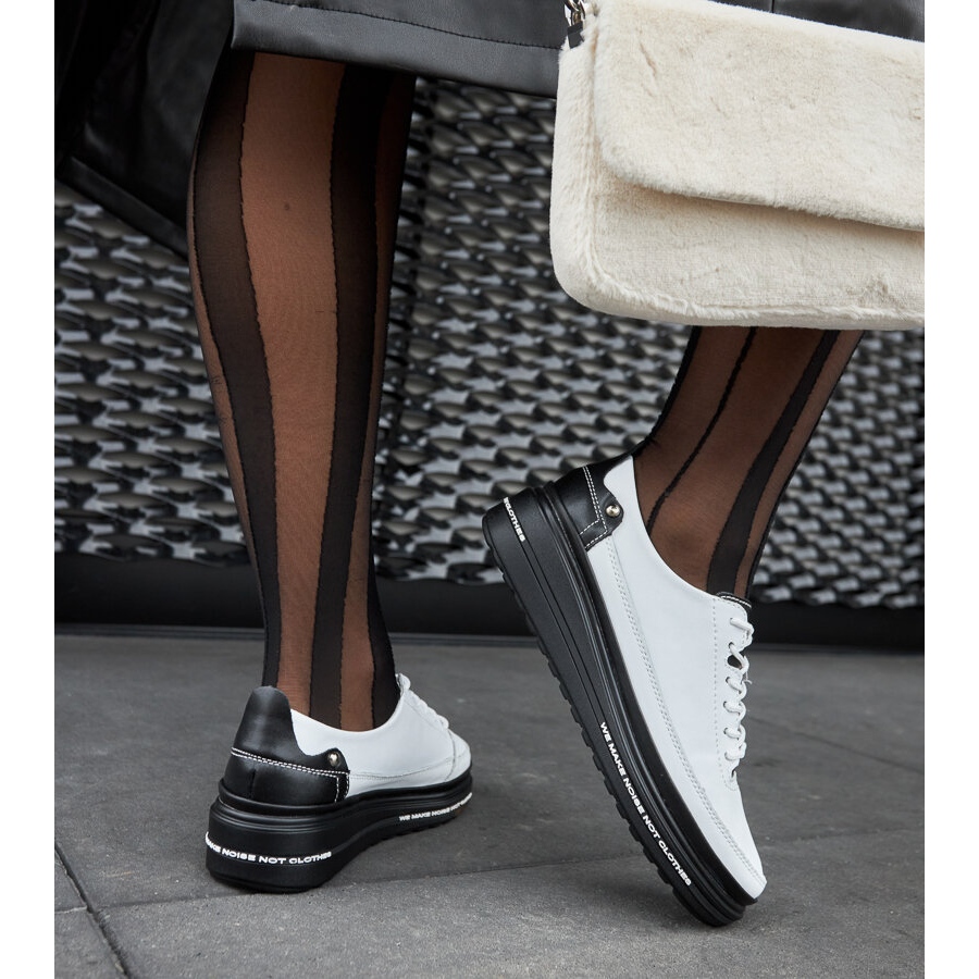 Podrobnosti: Černobílé kožené tenisky na klínku Piano bílý