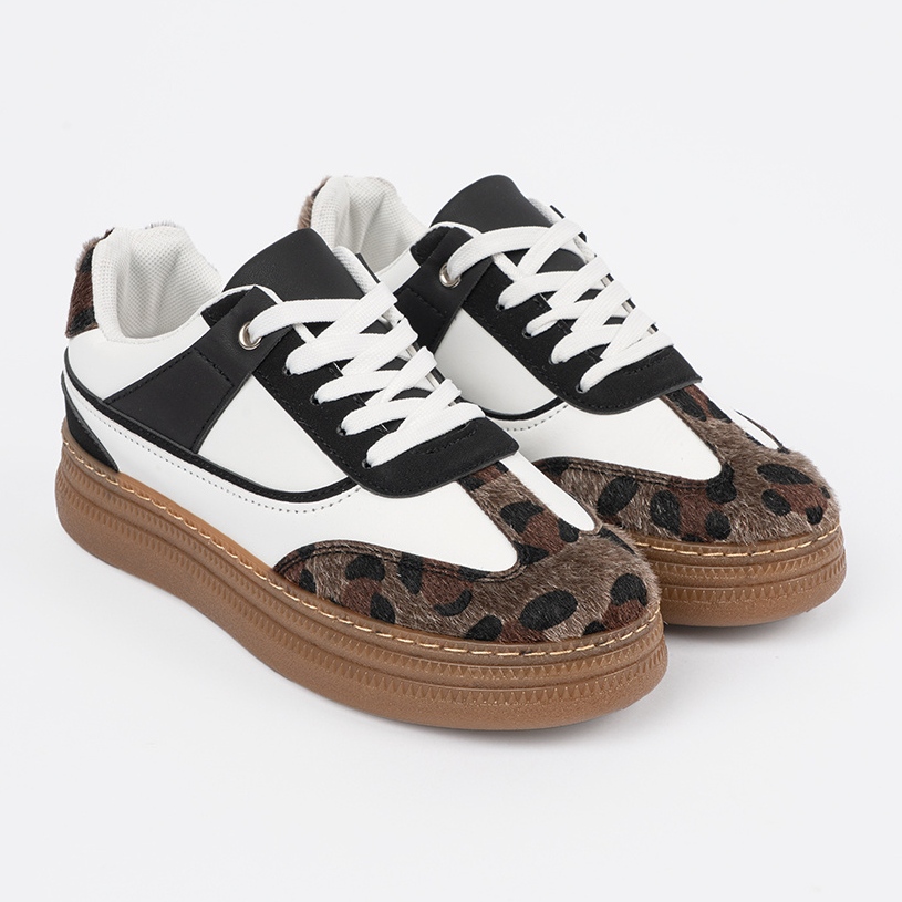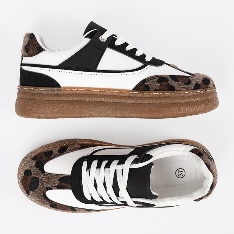 Černá základní barva kombinovaná s módními bílými prvky a vložkami leopardů se tyto tenisky snadno zapadají do nejnovějších trendů. Jsou ideálním doplňkem každodenních i elegantnějších stylizací.