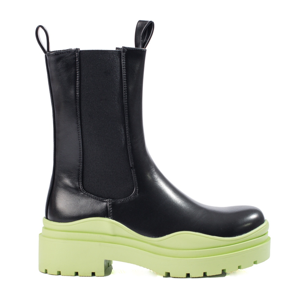 Vysoké dámské boty Jodhpur na silné platformě Shelovet - černá se zelenou podešvou
