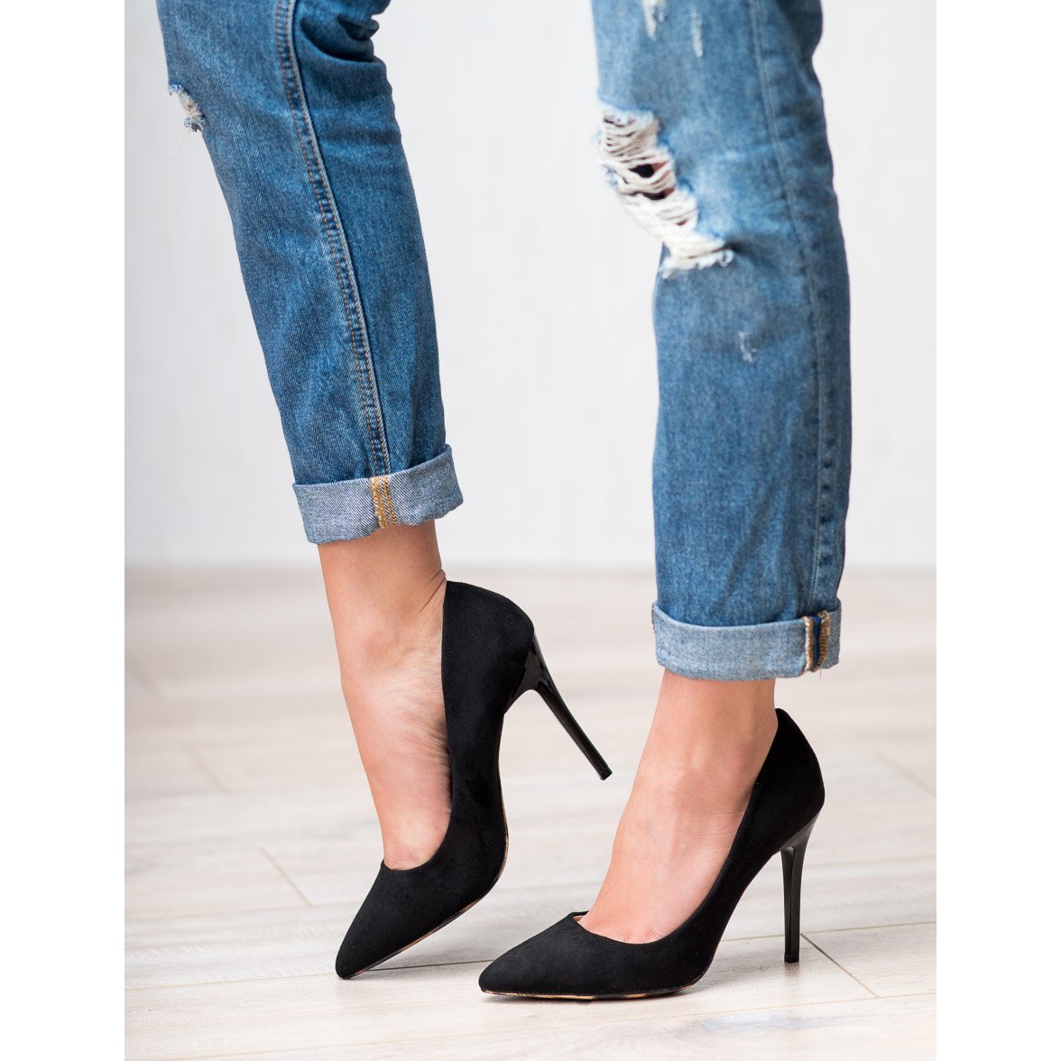 Lodičky na vysokém podpatku od Erynn jsou kvintesencem elegance a ženskosti. Tyto klasické černé boty vyrobené z vysoce kvalitní eko kůže imitující semiš jsou perfektní volbou pro zvláštní příležitosti. Jejich zúžená špička a profilovaná podešev se dokonale přizpůsobí tvaru nohy a zajistí pohodlí při nošení.