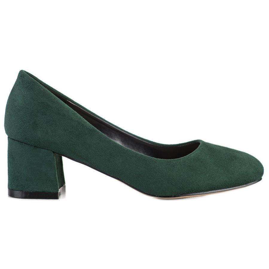 Lodičky Sabatina na širokém podpatku v zelené barvě jsou elegantním doplňkem pro každou ženu, která chce spojit pohodlí s klasickým stylem. Tyto boty jsou vyrobeny z vysoce kvalitní imitace semiše a mají měkkou uzavřenou patu, která zajišťuje pohodlí i při dlouhodobém nošení. Impozantní 5,5 cm vysoký sloupek dodává jemnou ladnost a zároveň zajišťuje stabilitu při každém kroku.