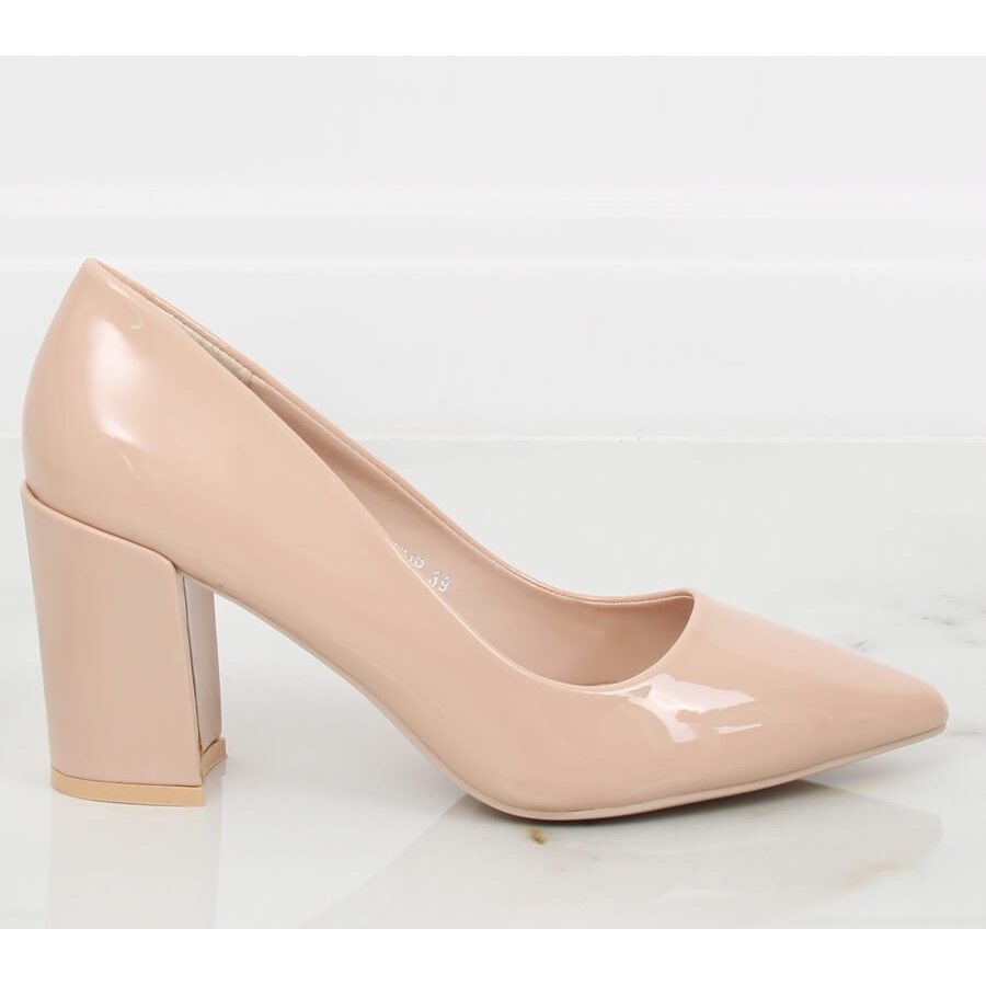 Elegantní dámská čerpadla se stabilním typem paty s výškou 8,5 cm. Klasická, tvarově řezaná špičatým nosem a lakovanou povrchem dokonale kombinuje nadčasovou eleganci s denní funkčností. Vyrobeno z ekologické kůže v univerzální béžové barvě - skvělé pro práci, pro setkání nebo formální výstupy.