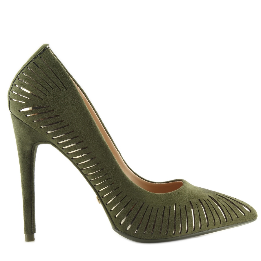 Objevte eleganci a jedinečný styl lodiček LE016P Olive na vysokém podpatku v nádherném zeleném odstínu. Tyto jedinečné dámské boty na štíhlém 11 cm vysokém podpatku spojují moderní design a komfort nošení. Lodičky vyrobené z ekologického semiše upoutají pozornost prolamovanými výřezy a lesklými stříbrnými akcenty, které jim propůjčují originalitu.
