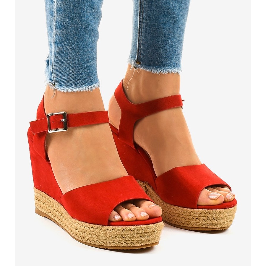 Podrobnosti: Červené espadrilky klínové sandály 9R195