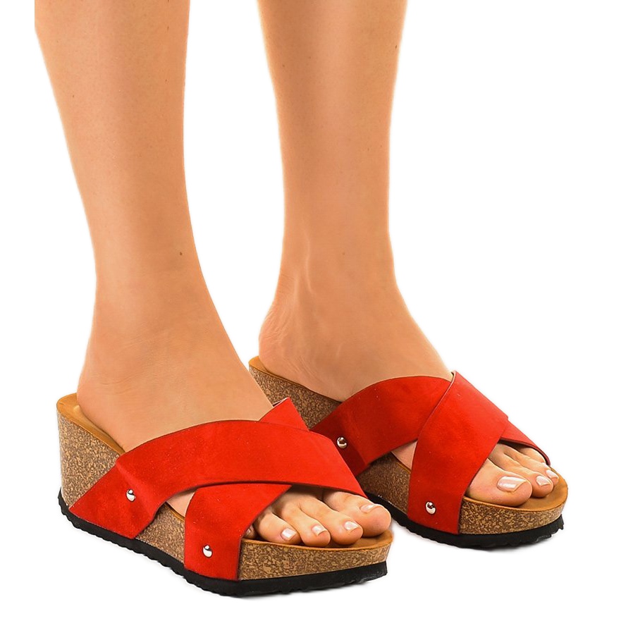 Podrobnosti: Červené klínové sandály GU53 pantofle červený