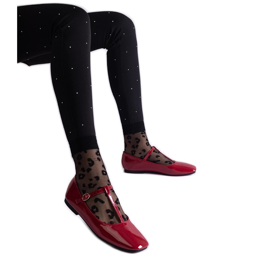 Červené lakované balerínky s páskem červený