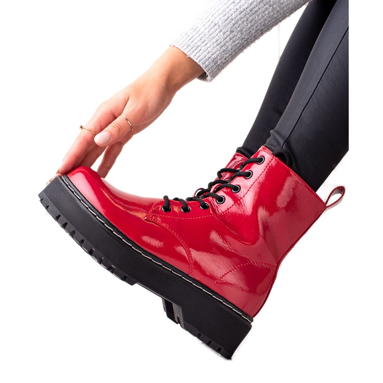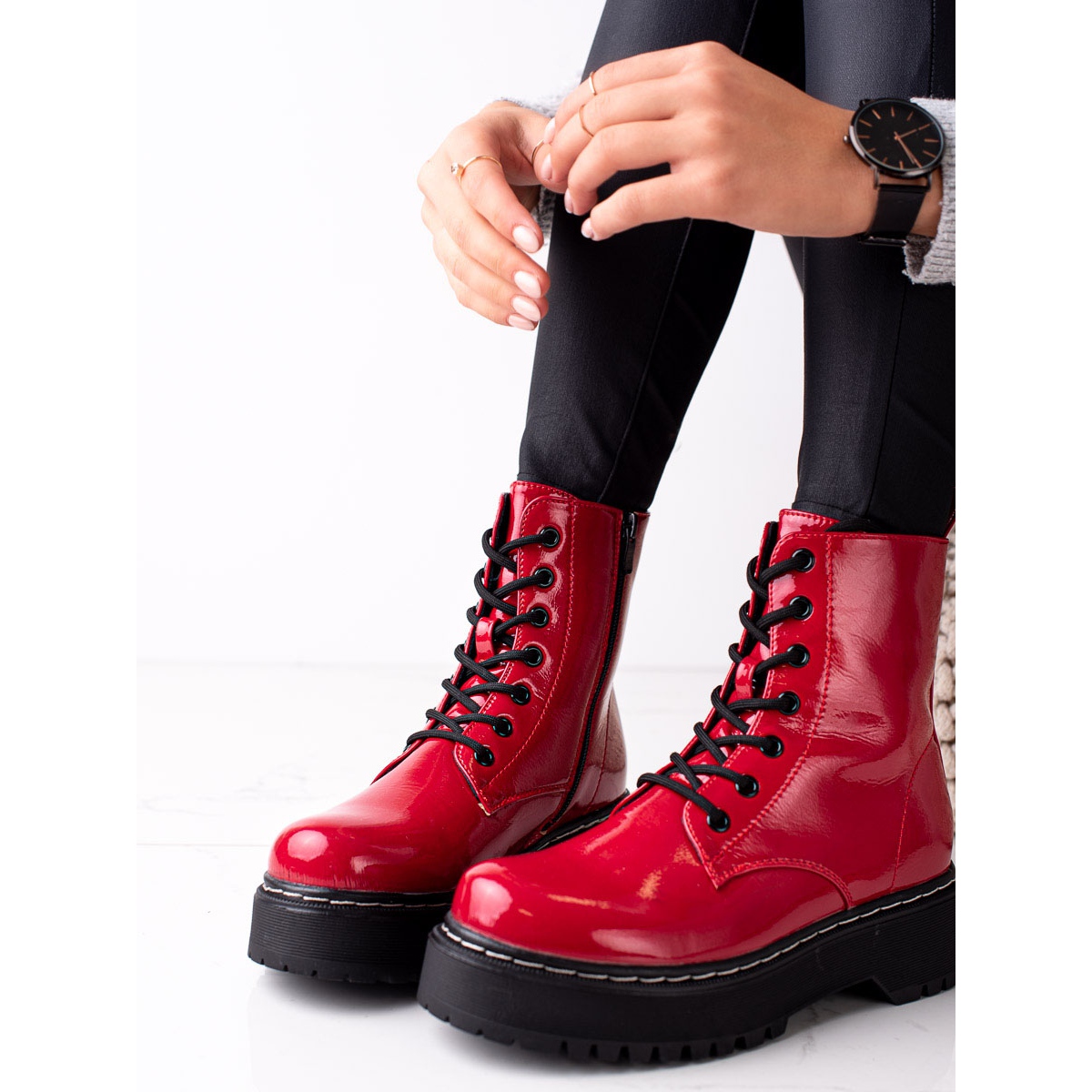 Horní výška 15 cm znamená, že boty sahají nad kotník, což nohy navíc chrání a hřeje. Zip a šněrovací zapínání usnadňují nazouvání a přizpůsobení noze. Červená barva jim dodává expresivitu a dělá z nich dokonalý akcent v jakémkoli stylu.