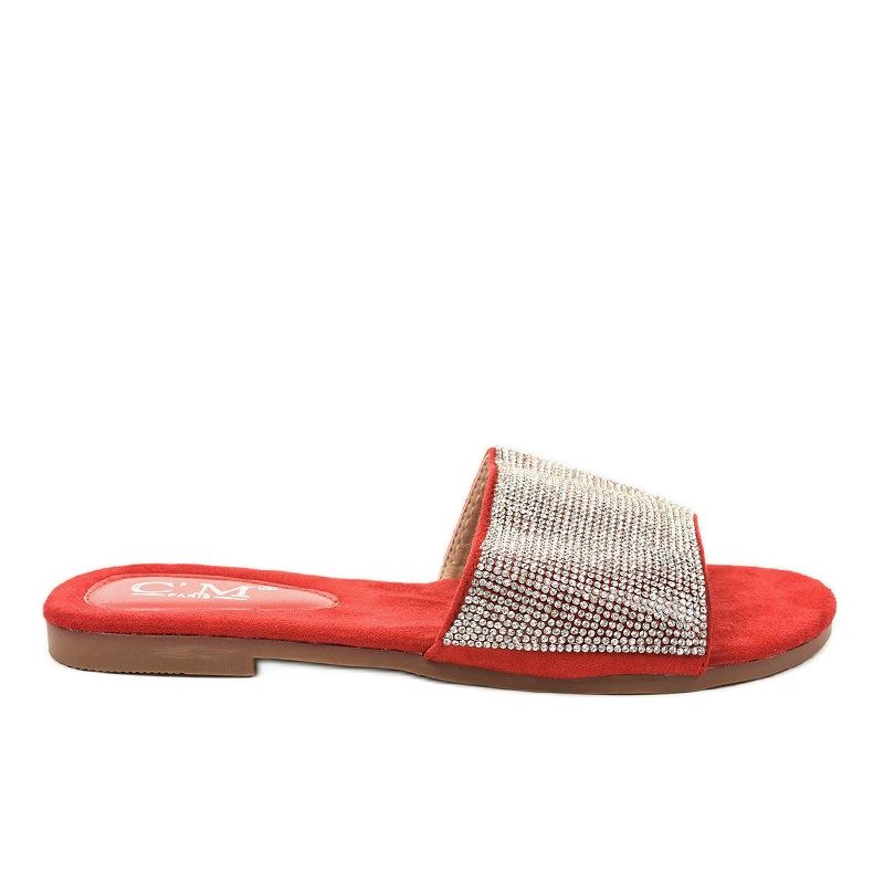 Červené pantofle se kubickým zirkonem 839-761 červený šedá