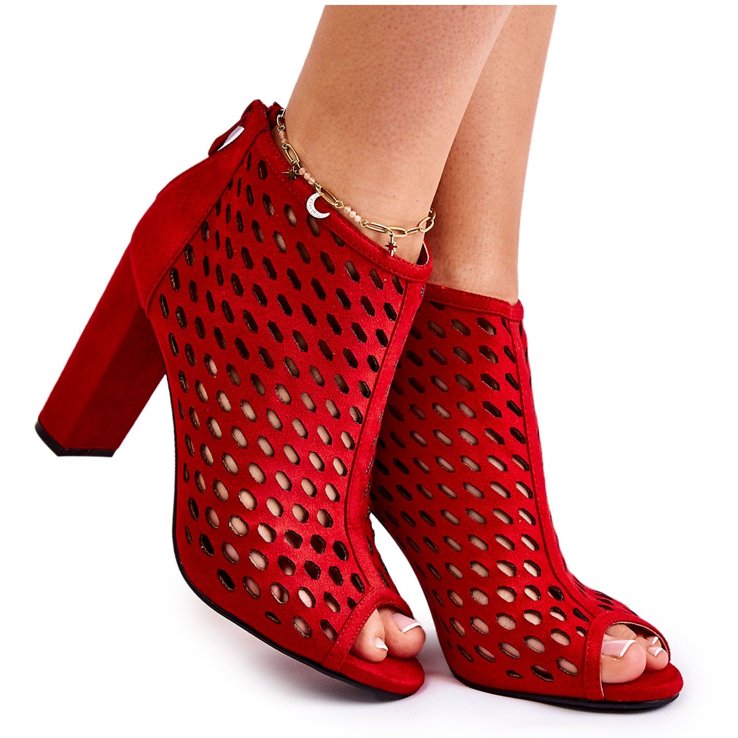**WT1 Semišové prolamované kotníkové boty Red Jenissa** - elegance a styl v jednom!