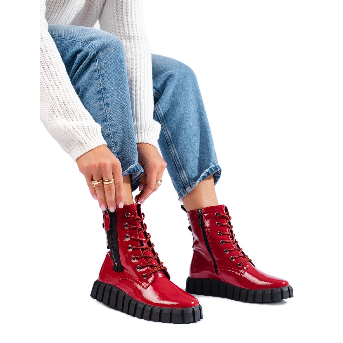 Objevte jedinečné červené plošinovky od výrobce W. Potocki, které dokonale odpovídají aktuálním trendům. Tyto dámské kotníkové boty kombinují ležérní a rockový styl, ideální pro sezónu podzim/zima. Jsou vyrobeny z vysoce kvalitní lakované ekologické kůže a nabízejí nejen atraktivní vzhled, ale také komfort nošení.