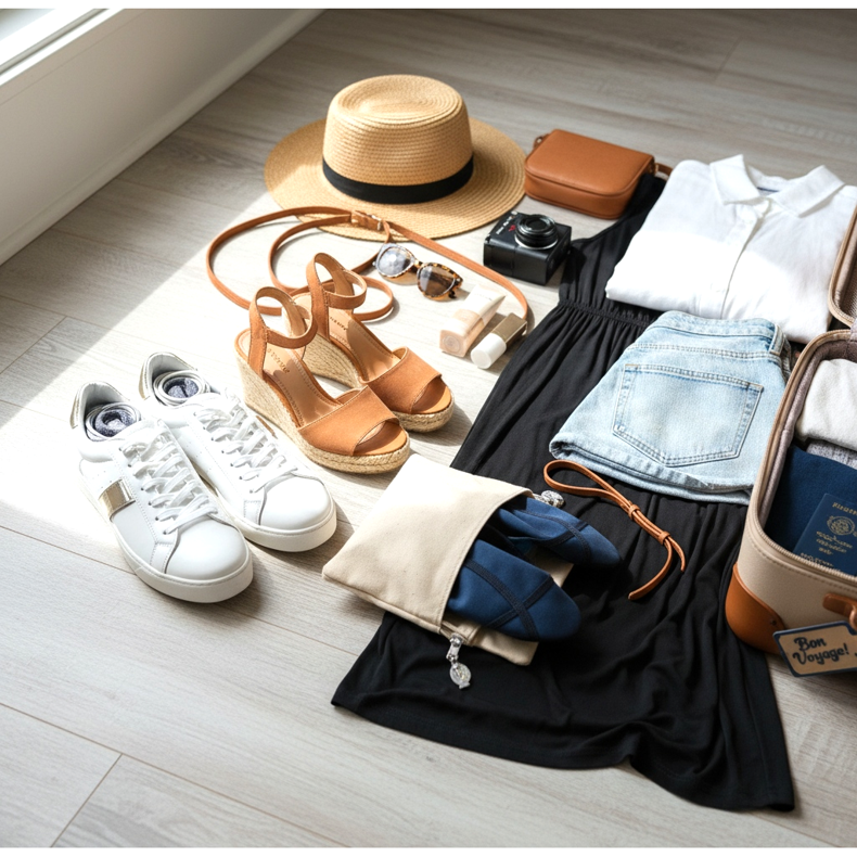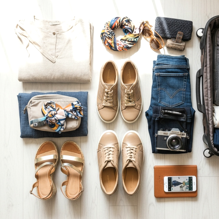 Osvědčeným vzorcem pro každý výlet je pravidlo tří párů: pohodlné boty na vyhlídkové výlety, elegantní boty na ven a plážové nebo sportovní boty, podle povahy výletu. Tato kombinace pokrývá prakticky každou situaci, od ranního běhání až po večerní večeři.