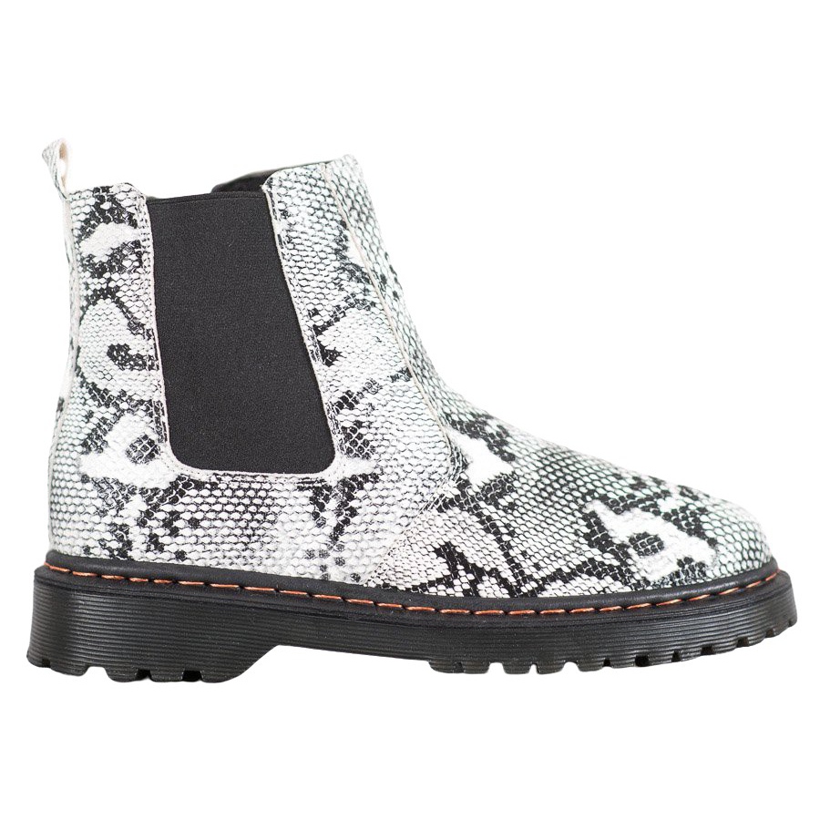 Chelsea boots jsou dostupné ve dvou klasických barvách: černé a bílé, což umožňuje jejich snadné sladění s jakýmkoli šatníkem. Dominantní vzor inspirovaný zvířecími motivy jim dodává jedinečný charakter, ideální pro milovníky rocku a ležérního stylu.