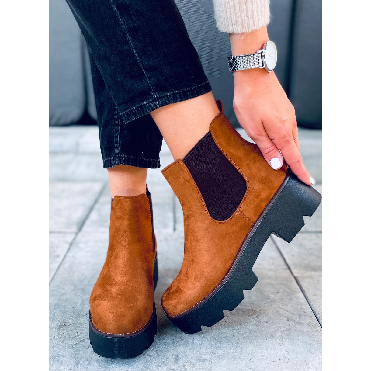 Inna marka Chelsea boty na vysoké podrážce Samanti Camel hnědý