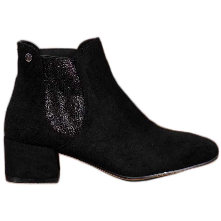 Objevte eleganci a pohodlí, které nabízí Ideal Shoes černé Chelsea boty se třpytkami. Tyto dámské kotníkové boty přitahují pozornost svým moderním designem a lesklým akcentem, který dodá lesk každému stylu. Jsou vyrobeny z nejkvalitnějšího ekologického semiše a jsou výbornou alternativou pro lidi, kteří hledají veganská řešení v obuvi.