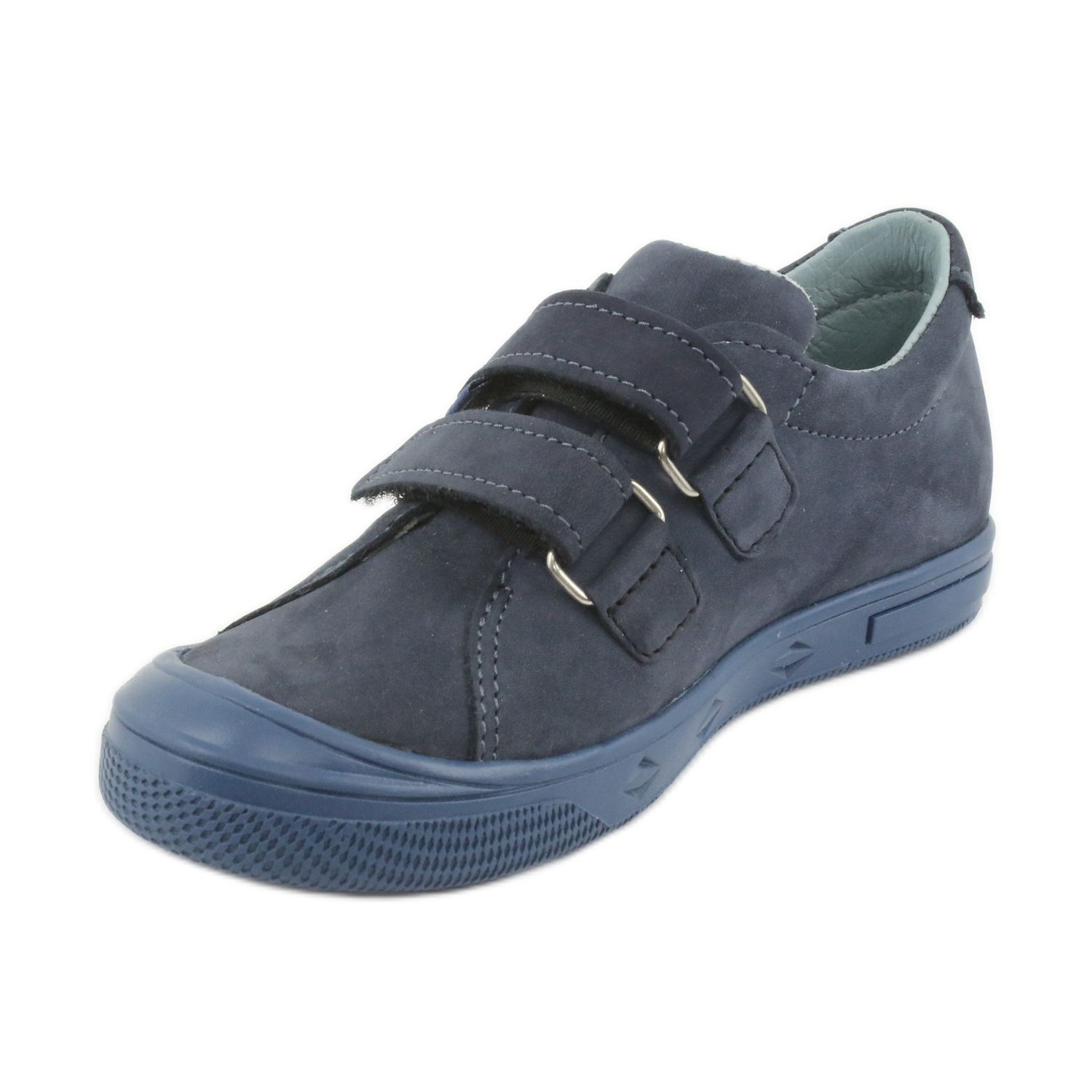 Chlapecké boty Mazurek 1267 v tmavě modré barvě jsou perfektní volbou na jarní a podzimní procházky. Tyto lehké boty vyrobené z vysoce kvalitní přírodní nubukové kůže poskytují pohodlí a odolnost. Díky zapínání na suchý zip je jejich nazouvání a svlékání extrémně snadné, což ocení každý rodič.