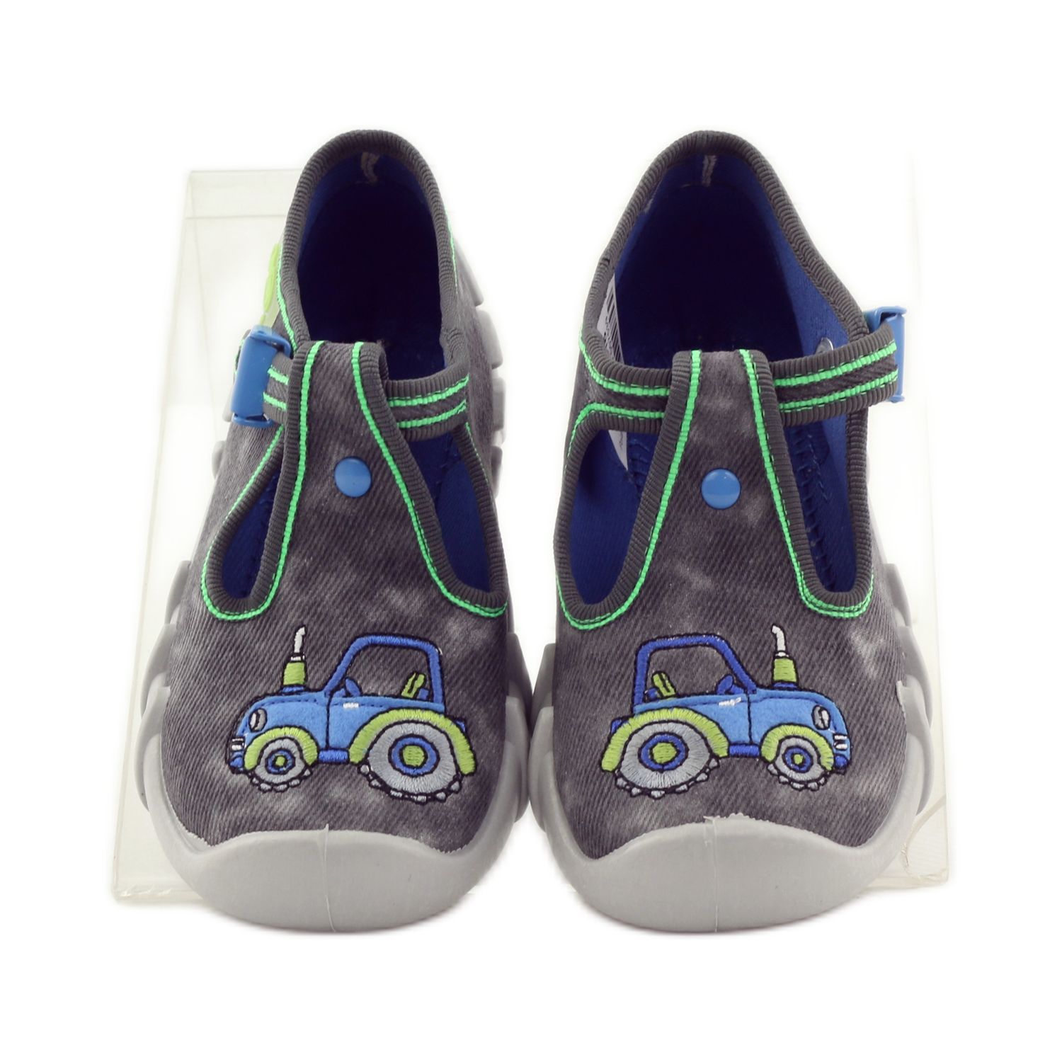 Befado Chlapecké pantofle Befado 110p316 traktor modrý šedá zelená