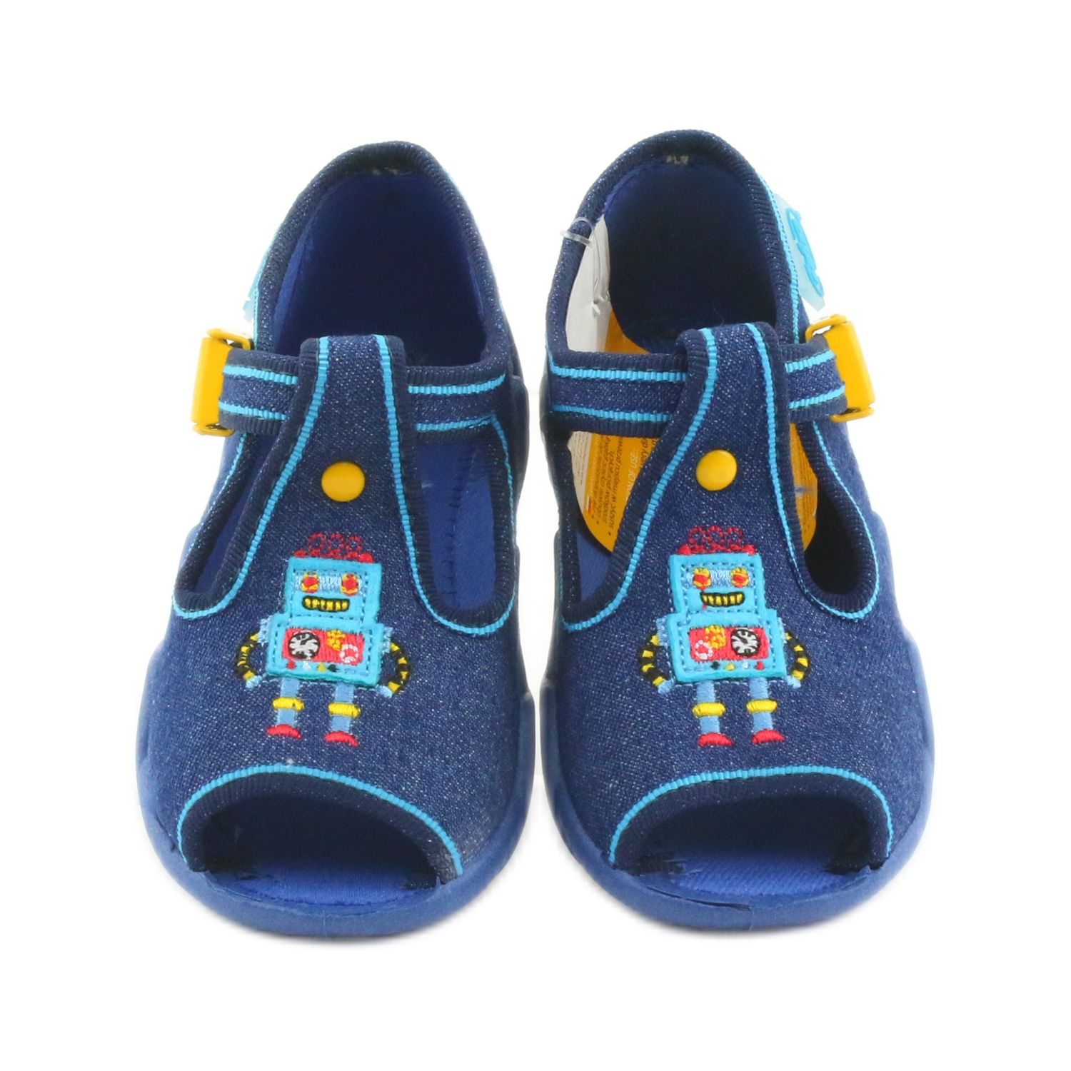 Chlapecké pantofle Befado 217P103 v tmavě modré barvě jsou perfektním řešením pro nejmenší, kombinující moderní design a funkčnost. Tyto domácí pantofle od polské značky Befado se skvěle hodí do školky, domů nebo na dvůr.