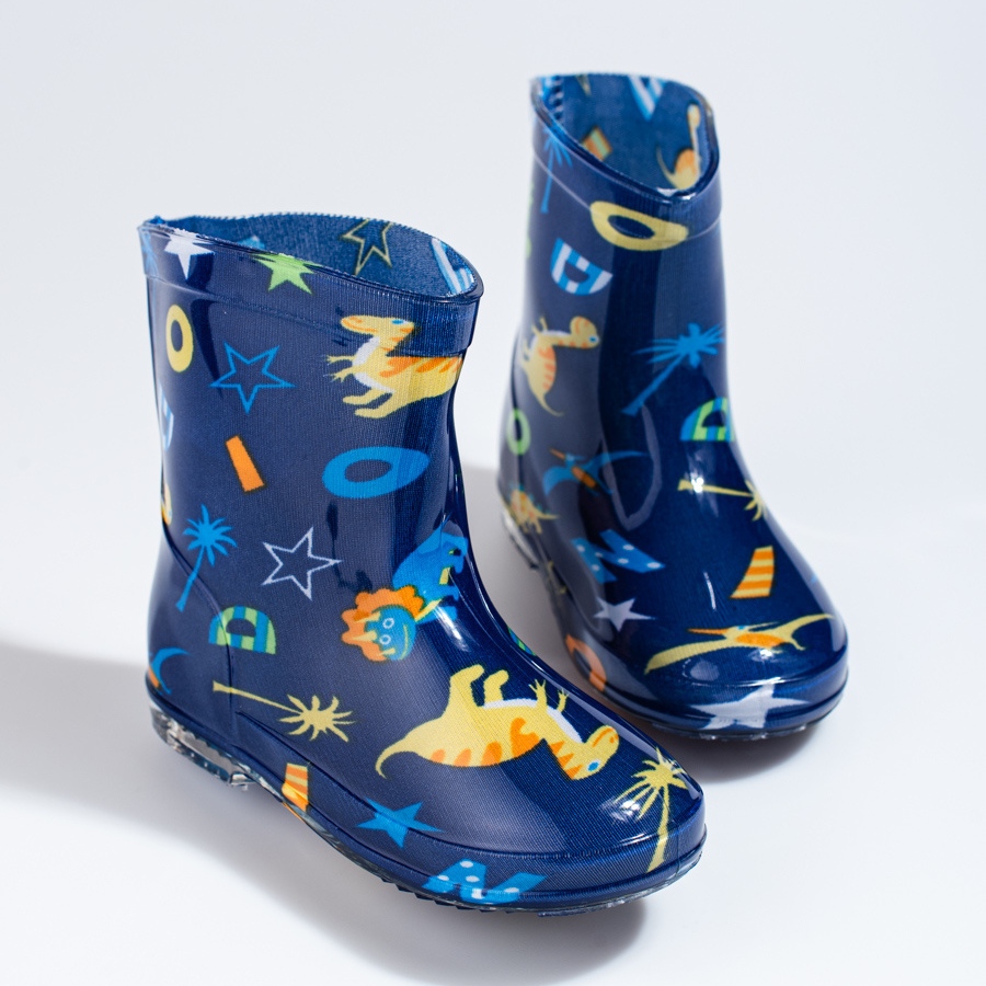 Chlapecké námořnické holínky Wellington s dinosauřími vzory od slavné značky SHELOVET jsou nenahraditelným společníkem do deštivých a vlhkých dnů každého malého průzkumníka. Designéři si dali záležet nejen na tom, aby nohy zůstaly v suchu, ale také na tom, aby holínky vypadaly zajímavě, a proto jsou jejich modré barvy obohaceny o pestrobarevný motiv dinosaura.
