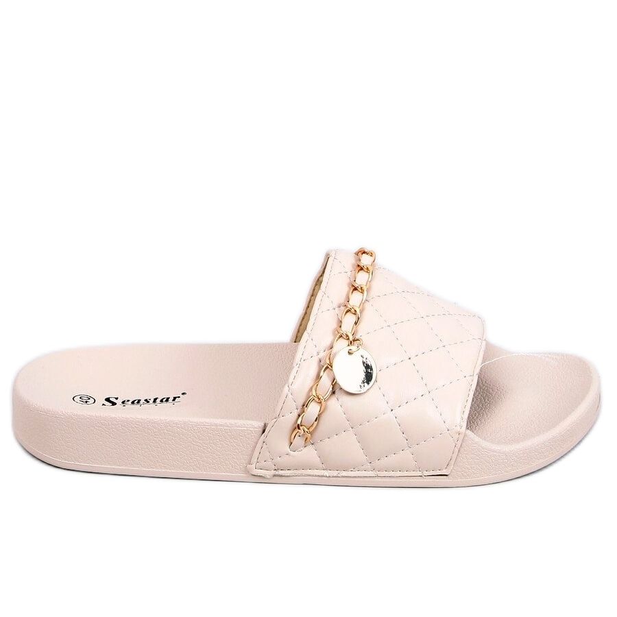 Představujeme béžové žabky CK189P, ideální pro každou ženu, která chce dodat svému letnímu šatníku šik. Tento jedinečný model se vyznačuje působivým prošíváním a módním řetízkem, který upoutá pozornost a budete se cítit jako skutečná hvězda.