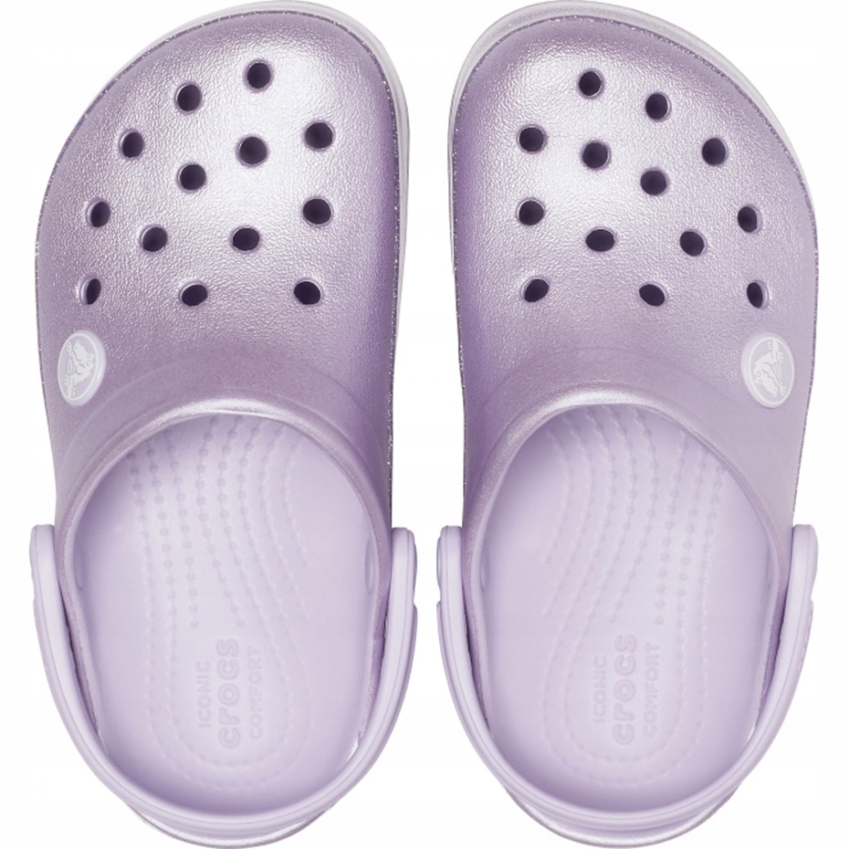 Barevné, lehké a pohodlné croky pro dívky, ideální pro každodenní nošení - na pláž, na mateřskou školu nebo na dvoře. Kids Croc Band Glitter Clog Kids kombinuje klasický design Crocs s jemným třpytivým povrchem, který přidá kouzlo ke jakékoli stylizaci.