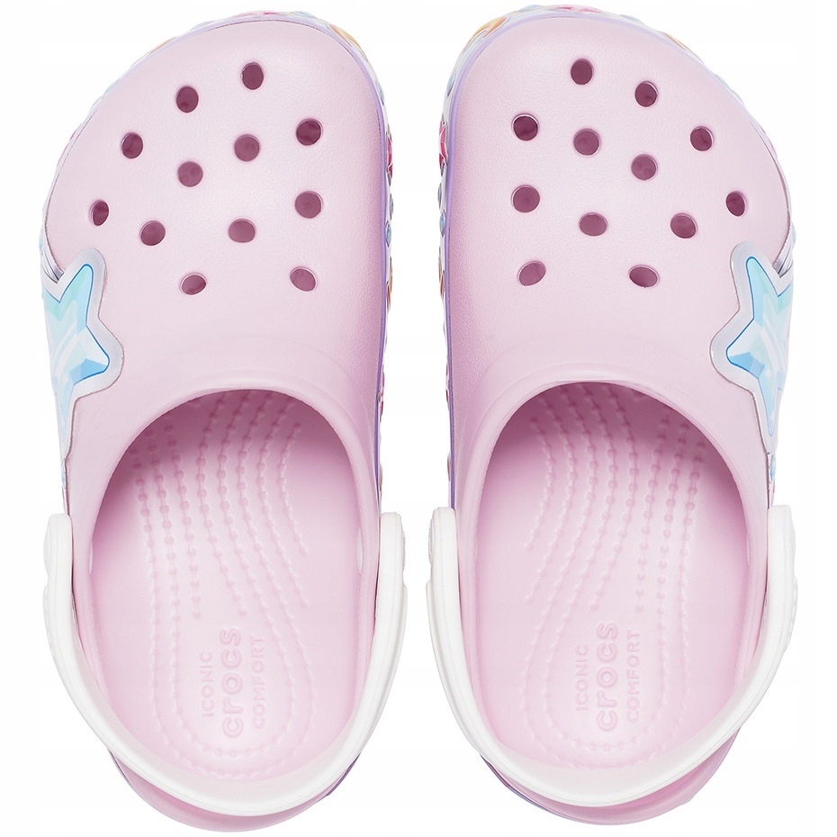 Praktické a pohodlné crocs FL Star Band Clog Flip Flip Flip Flip Flip Flip Flip Flip Flip Flops jsou perfektní obuv pro aktivní dívky - pro pláž, bazén a hřiště. Pěna Light, Soft Croslite ™ poskytuje dlouhodobé pohodlí a profilovaná vložka podporuje nohu během každodenních her.