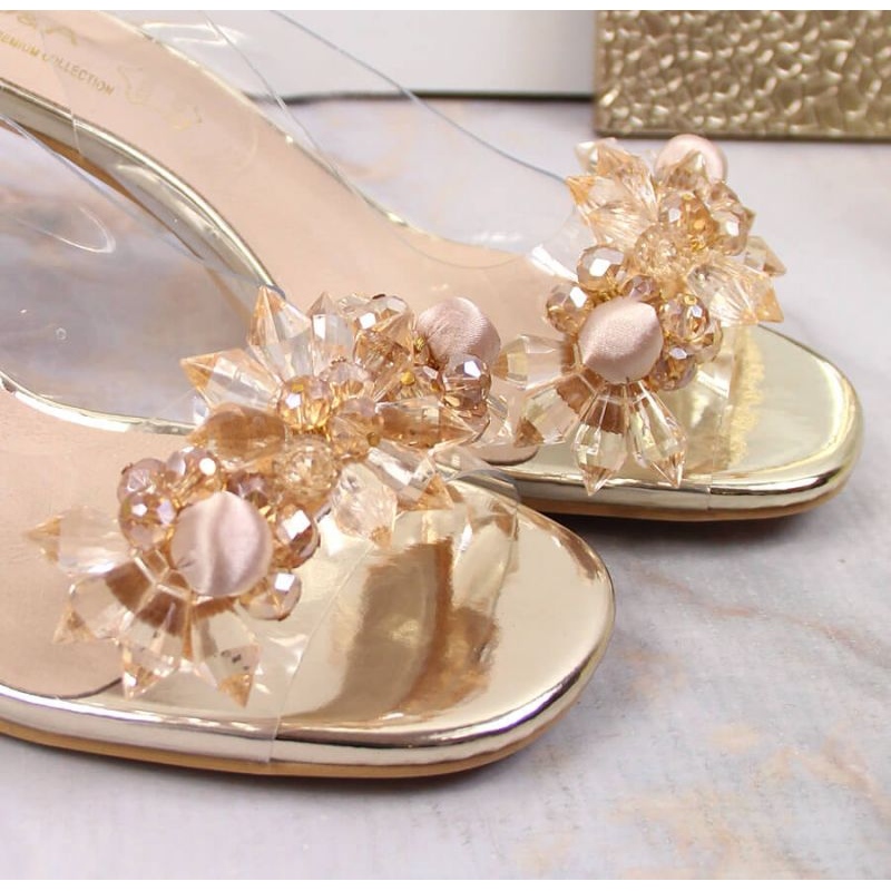 Transparentní sandály s podpatky D&A v OLI191B - Zlato