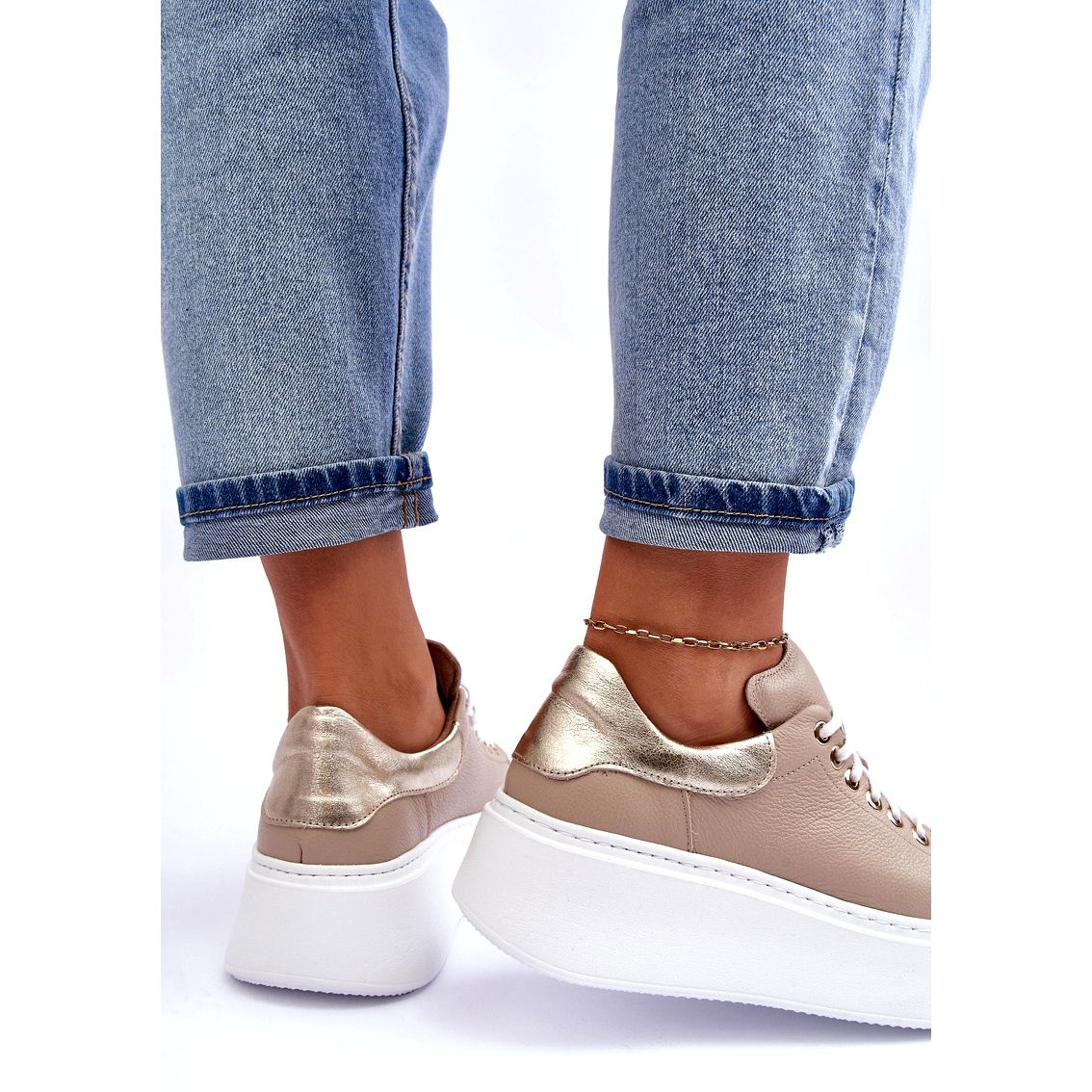 Lemar Lemar Dámská kožená sportovní bota na platformě Beige béžový