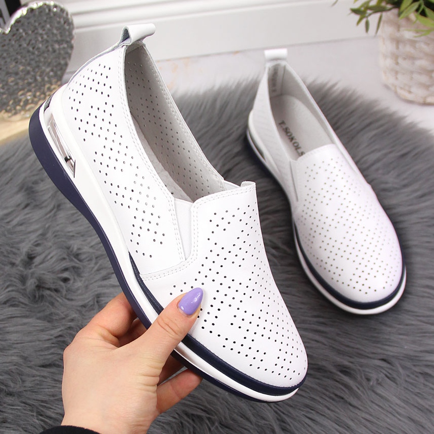 T.Sokolski Dámská prolamovaná kůže, nazouváky, bílé T.Sokolski