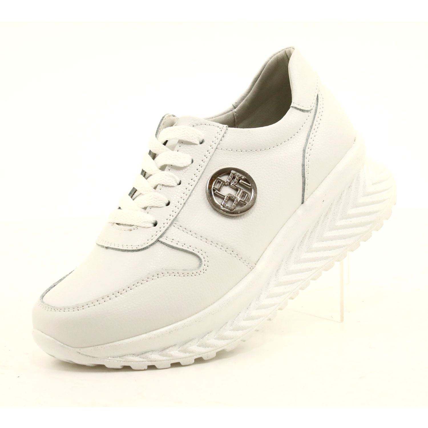 Dámské šněrovací sportovní boty Filippo DP3547/22 WH v bílé a stříbrné barvě jsou perfektní volbou pro ženy, které chtějí spojit pohodlí s elegancí. Tyto stylové 5 cm vysoké tenisky na platformě efektně podtrhnou jakýkoli styl a dodají mu trochu šik. Vyrobeny z přírodní kůže, zajišťují perfektní padnutí a pohodlí při celodenním nošení.