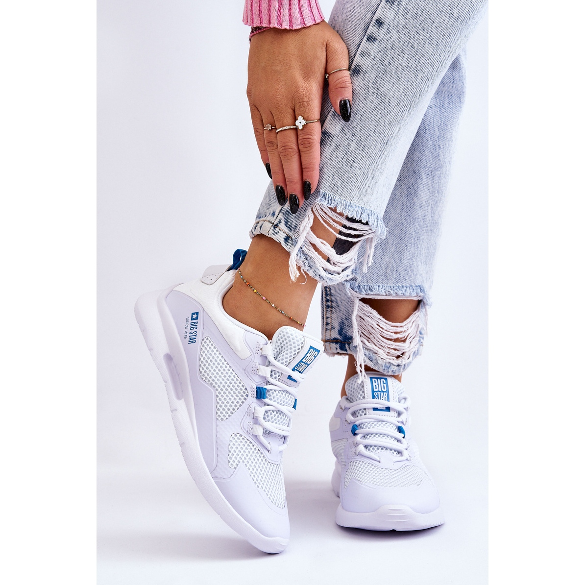 Dámská velká hvězda LL274373 Sportovní boty - bílé tenisky, které každý den kombinují módní vzhled s pohodlím. Vyrobeny z kombinace prodyšného pletiva a gumového plastu jsou lehké, dobře větrané a ideální pro městské aktivity a příležitostné stylizace.