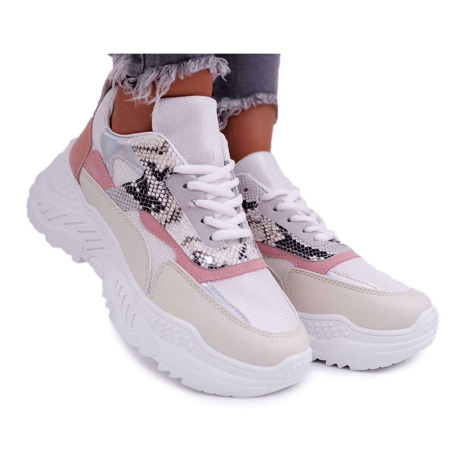 Inna marka Dámská sportovní obuv Tlustá podrážka Bílý had Sevana šedá vícebarevný